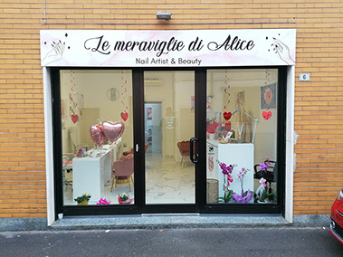 Adesivi prespaziati, decalcomanie, decorazioni di interni, vetrine e automezzi